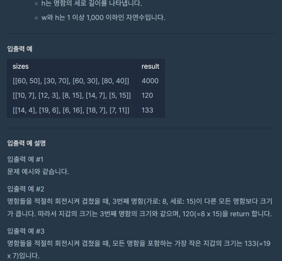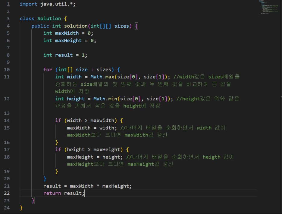 이차배열을 순회하면서 더 큰 값이 나타날 때마다 maxWidth값과 maxHeight값을 갱신하는