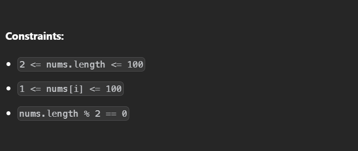 이제 nums안의 요소들을 2개씩 꺼내야하는데
